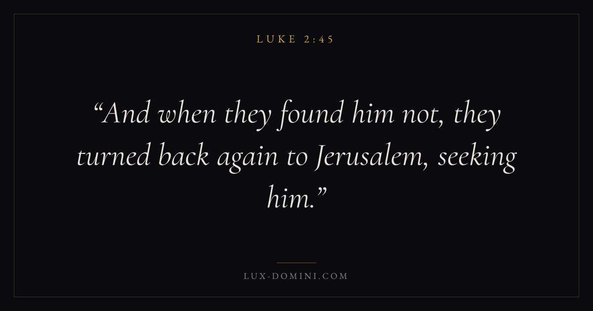And when they found him not, they turned back again to Jerusalem, seeking him.