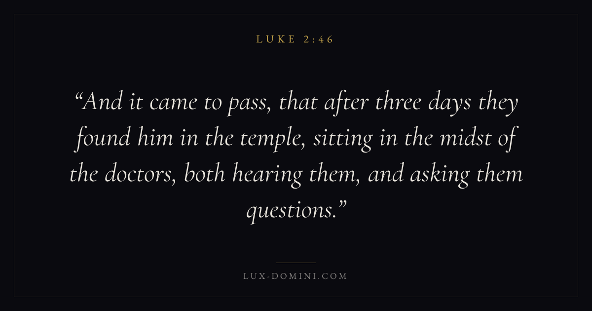 And it came to pass, that after three days they found him in the temple, sitting in the midst of the doctors, both hearing them, and asking them questions.
