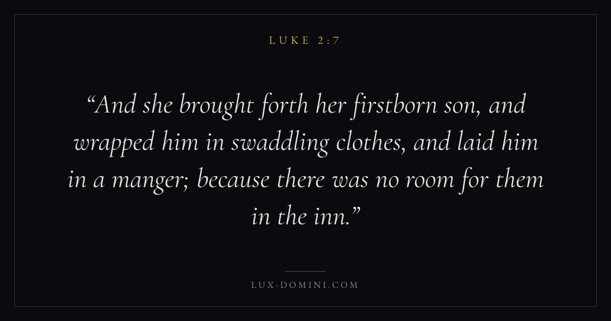 And she brought forth her firstborn son, and wrapped him in swaddling clothes, and laid him in a manger; because there was no room for them in the inn.