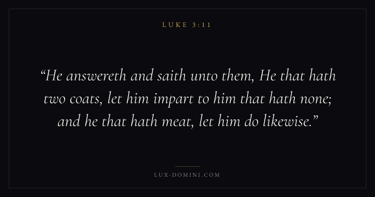 He answereth and saith unto them, He that hath two coats, let him impart to him that hath none; and he that hath meat, let him do likewise.