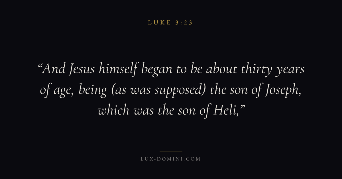 And Jesus himself began to be about thirty years of age, being (as was supposed) the son of Joseph, which was the son of Heli,