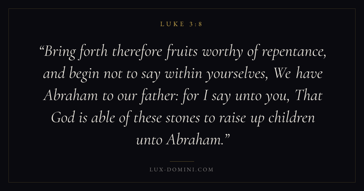 Bring forth therefore fruits worthy of repentance, and begin not to say within yourselves, We have Abraham to our father: for I say unto you, That God is able of these stones to raise up children unto Abraham.
