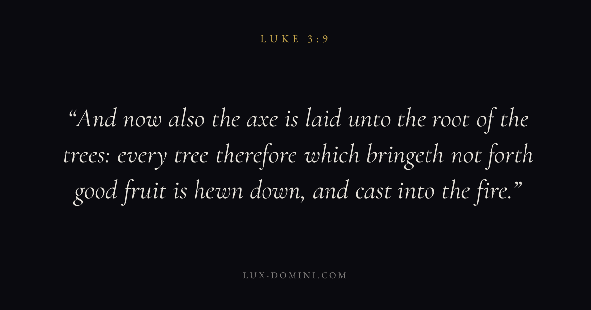 And now also the axe is laid unto the root of the trees: every tree therefore which bringeth not forth good fruit is hewn down, and cast into the fire.