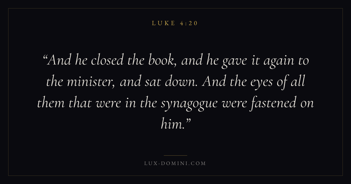 And he closed the book, and he gave it again to the minister, and sat down. And the eyes of all them that were in the synagogue were fastened on him.