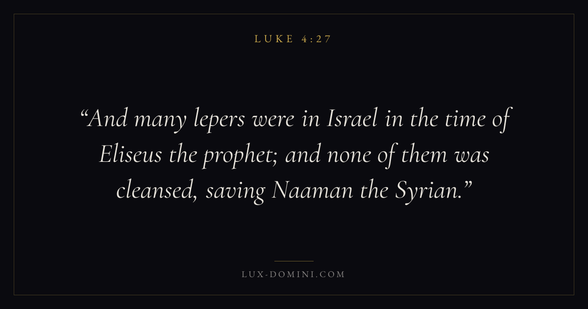 And many lepers were in Israel in the time of Eliseus the prophet; and none of them was cleansed, saving Naaman the Syrian.