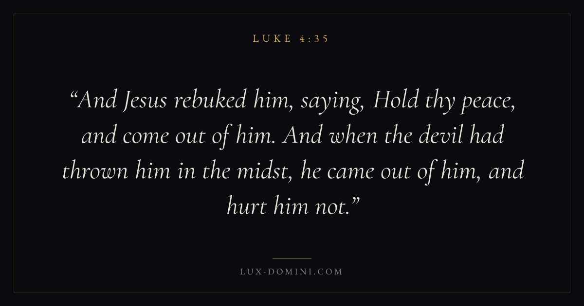 And Jesus rebuked him, saying, Hold thy peace, and come out of him. And when the devil had thrown him in the midst, he came out of him, and hurt him not.