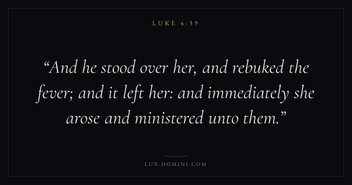 And he stood over her, and rebuked the fever; and it left her: and immediately she arose and ministered unto them.