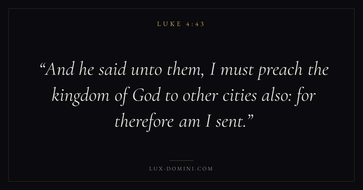 And he said unto them, I must preach the kingdom of God to other cities also: for therefore am I sent.