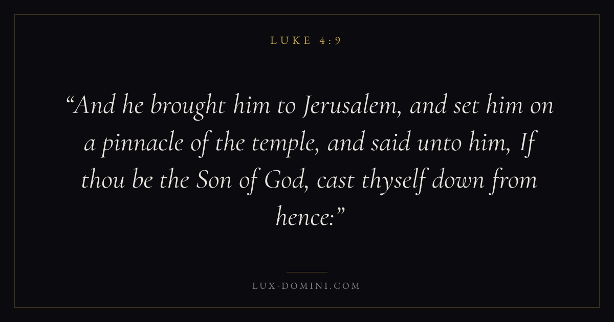 And he brought him to Jerusalem, and set him on a pinnacle of the temple, and said unto him, If thou be the Son of God, cast thyself down from hence: