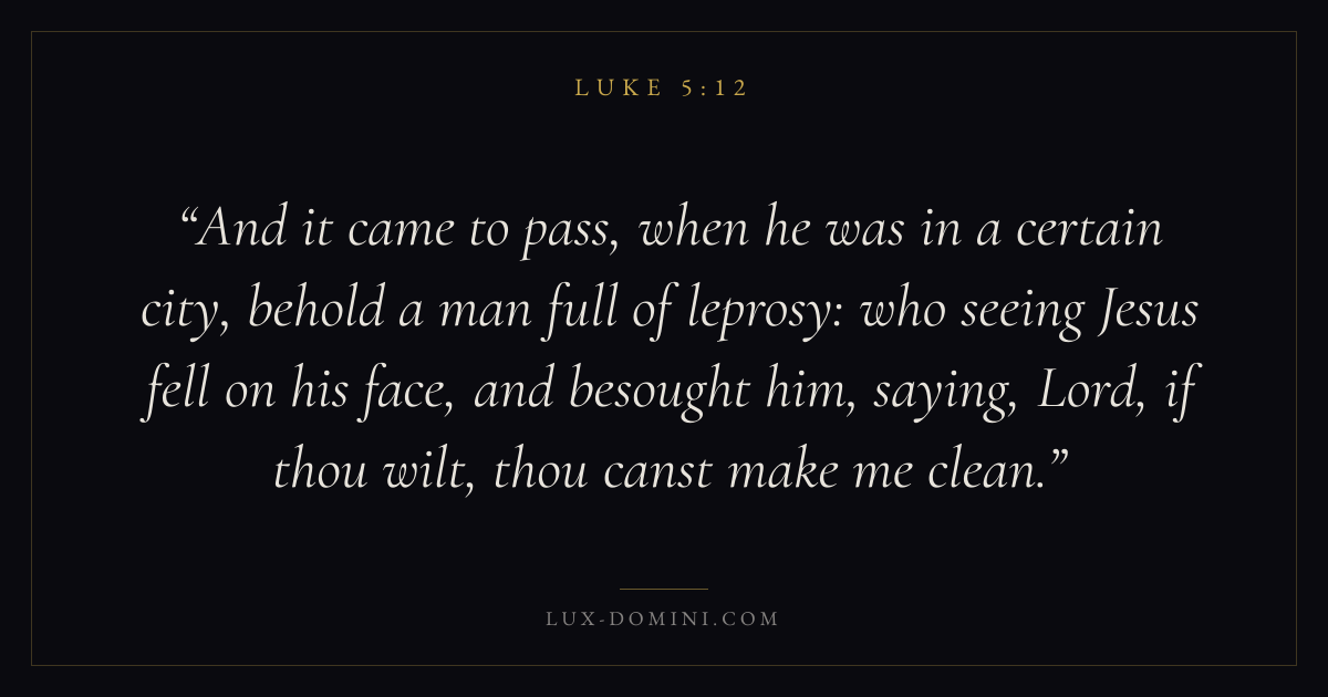 And it came to pass, when he was in a certain city, behold a man full of leprosy: who seeing Jesus fell on his face, and besought him, saying, Lord, if thou wilt, thou canst make me clean.