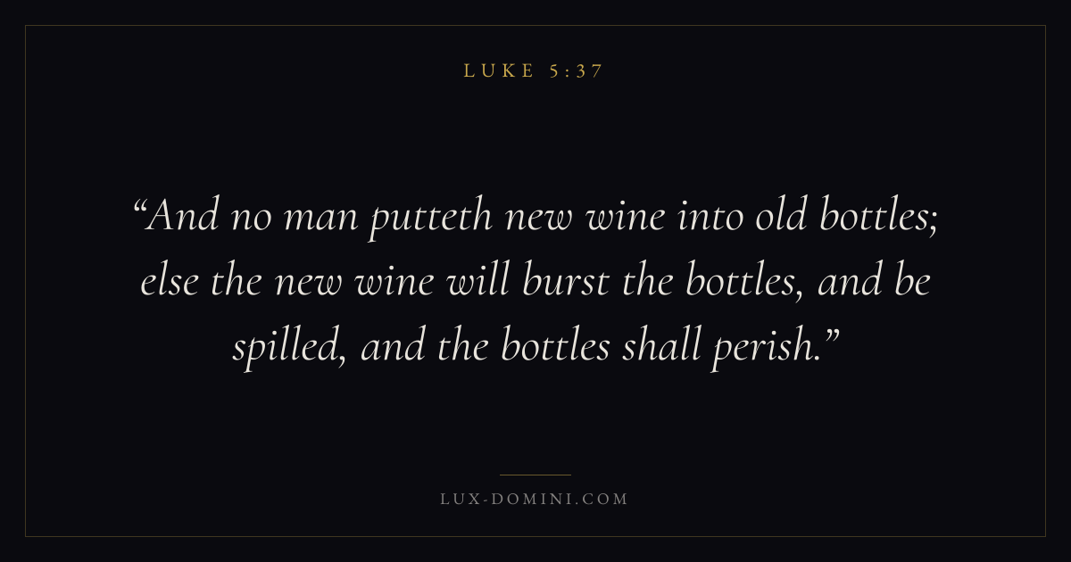 And no man putteth new wine into old bottles; else the new wine will burst the bottles, and be spilled, and the bottles shall perish.