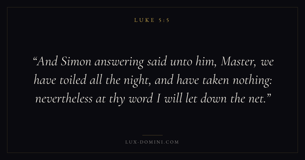 And Simon answering said unto him, Master, we have toiled all the night, and have taken nothing: nevertheless at thy word I will let down the net.