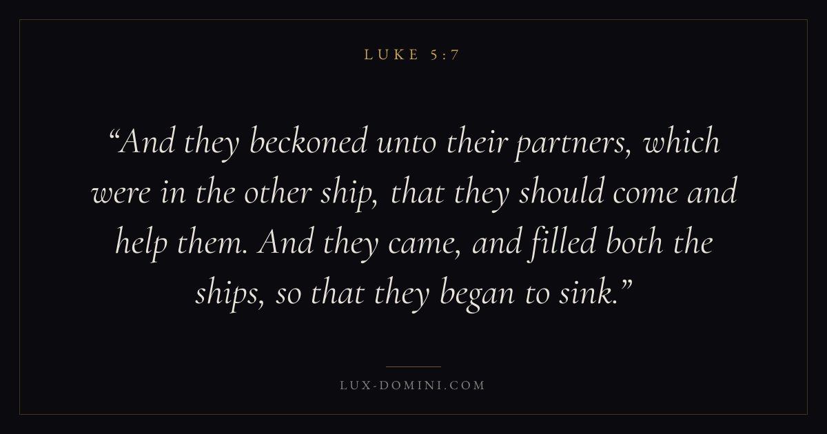 And they beckoned unto their partners, which were in the other ship, that they should come and help them. And they came, and filled both the ships, so that they began to sink.