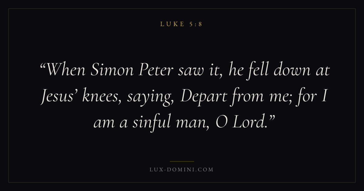 When Simon Peter saw it, he fell down at Jesus’ knees, saying, Depart from me; for I am a sinful man, O Lord.