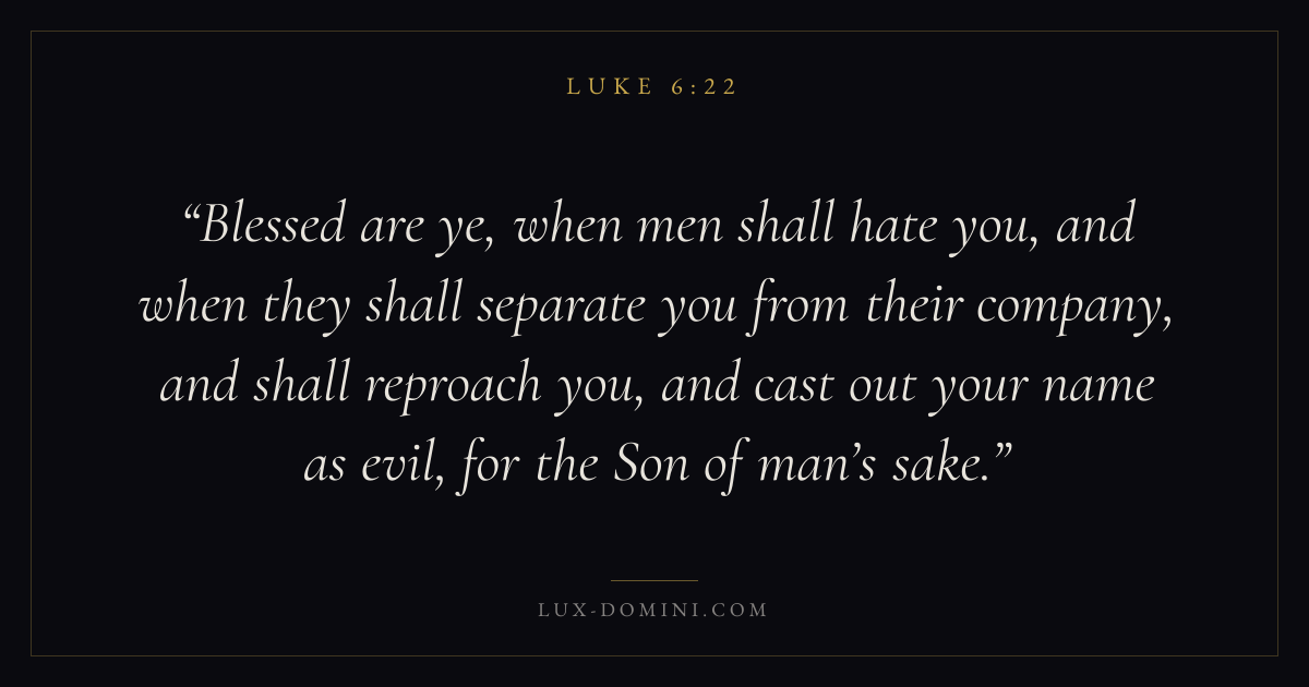 Blessed are ye, when men shall hate you, and when they shall separate you from their company, and shall reproach you, and cast out your name as evil, for the Son of man’s sake.
