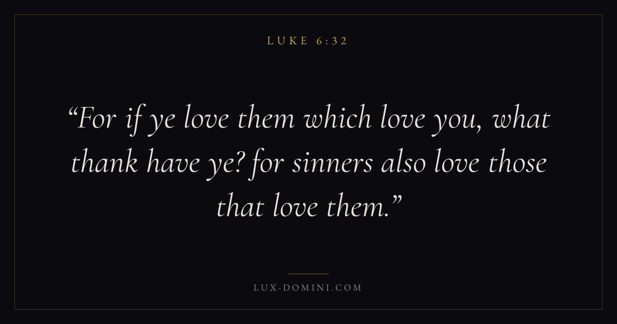 For if ye love them which love you, what thank have ye? for sinners also love those that love them.