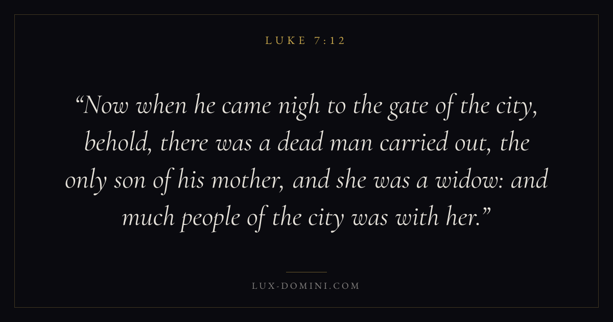 Now when he came nigh to the gate of the city, behold, there was a dead man carried out, the only son of his mother, and she was a widow: and much people of the city was with her.