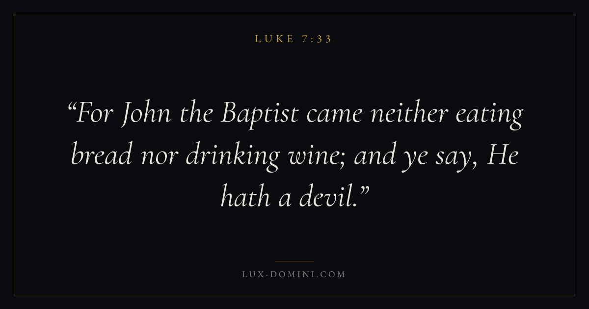 For John the Baptist came neither eating bread nor drinking wine; and ye say, He hath a devil.