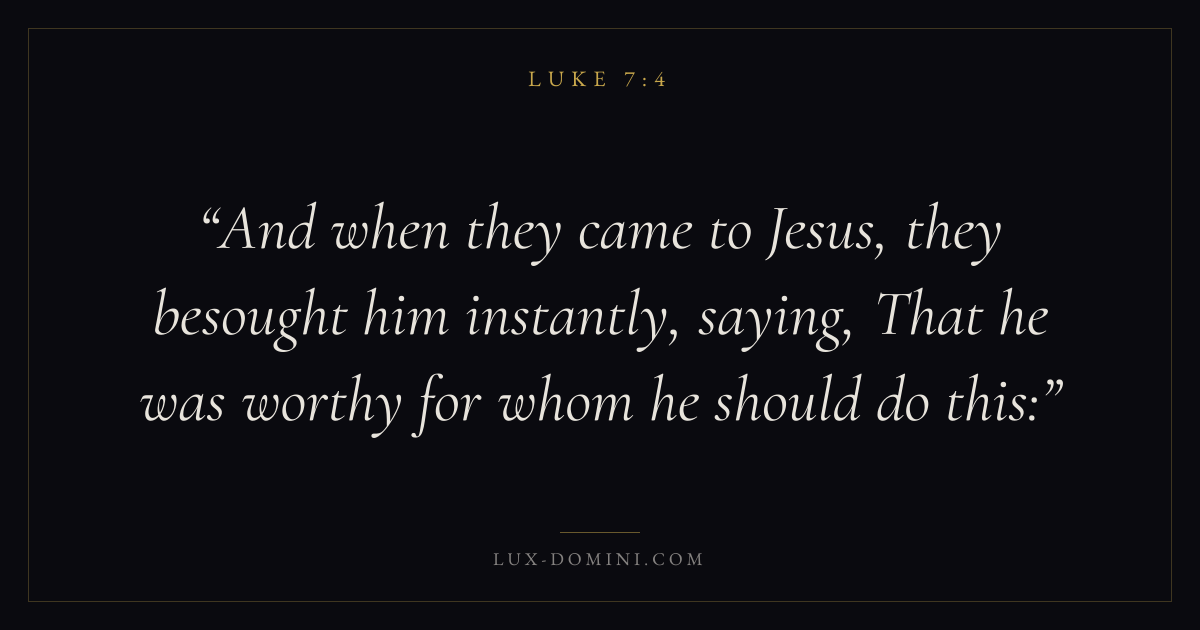 And when they came to Jesus, they besought him instantly, saying, That he was worthy for whom he should do this: