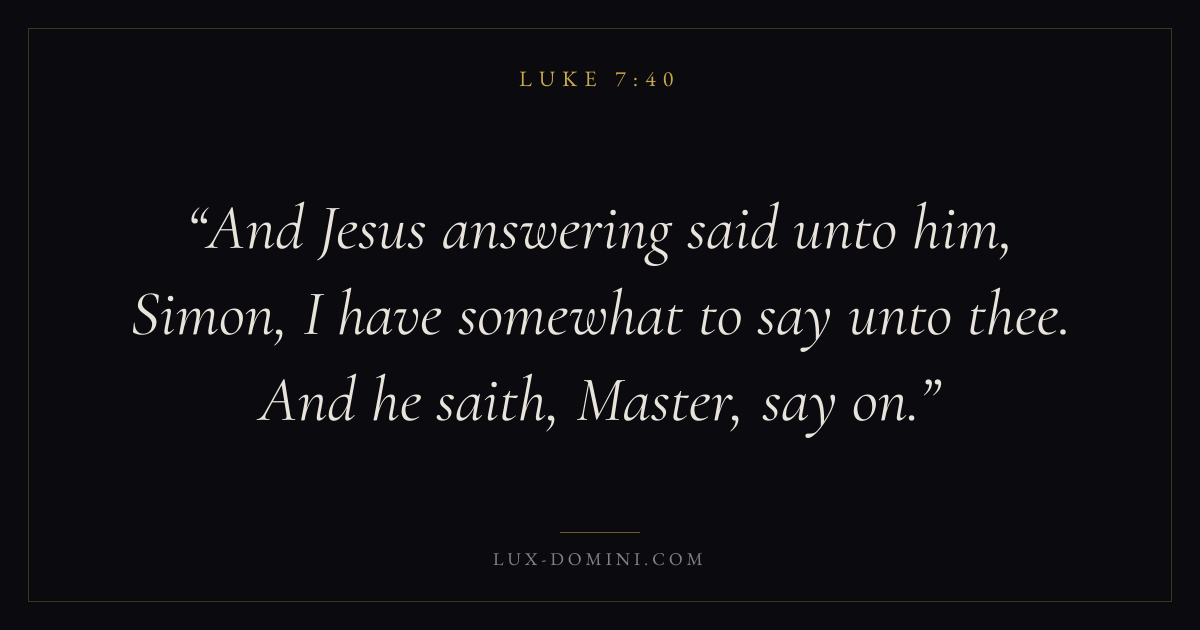 And Jesus answering said unto him, Simon, I have somewhat to say unto thee. And he saith, Master, say on.