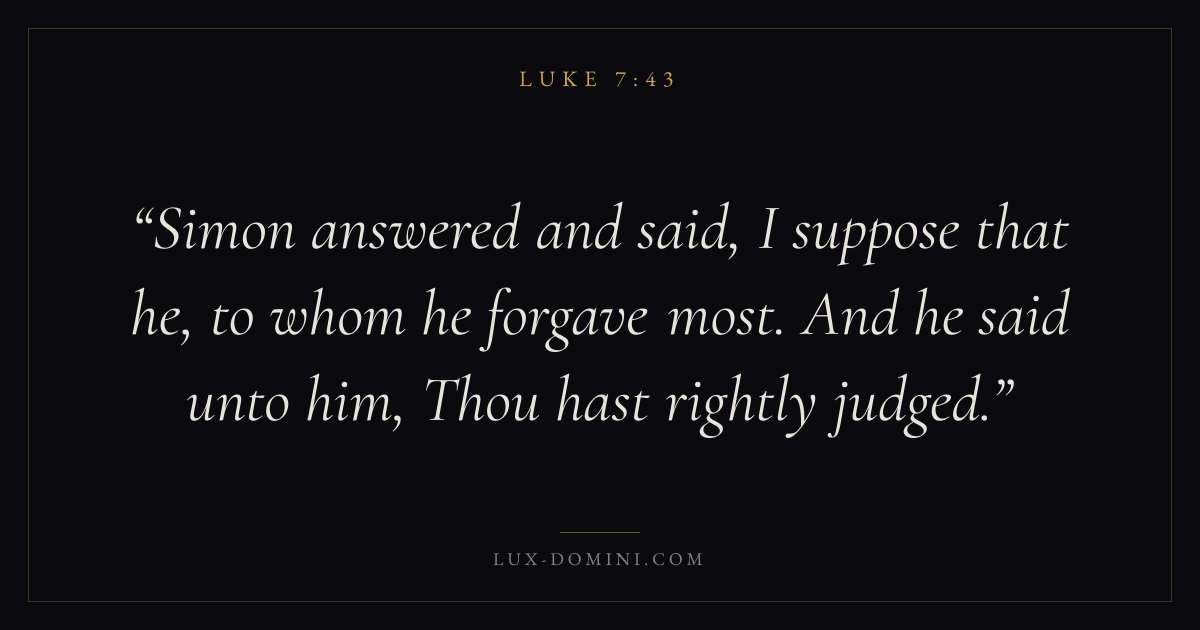 Simon answered and said, I suppose that he, to whom he forgave most. And he said unto him, Thou hast rightly judged.