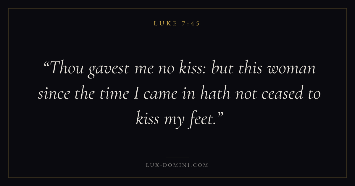 Thou gavest me no kiss: but this woman since the time I came in hath not ceased to kiss my feet.