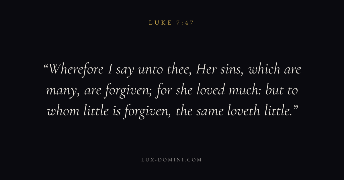 Wherefore I say unto thee, Her sins, which are many, are forgiven; for she loved much: but to whom little is forgiven, the same loveth little.