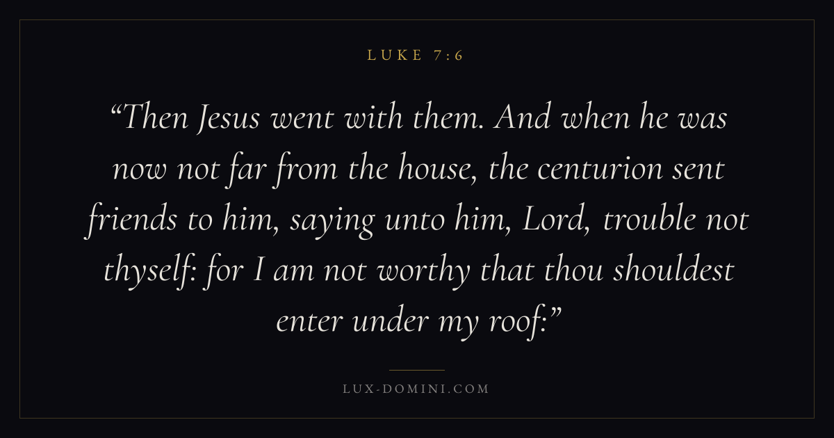 Then Jesus went with them. And when he was now not far from the house, the centurion sent friends to him, saying unto him, Lord, trouble not thyself: for I am not worthy that thou shouldest enter under my roof:
