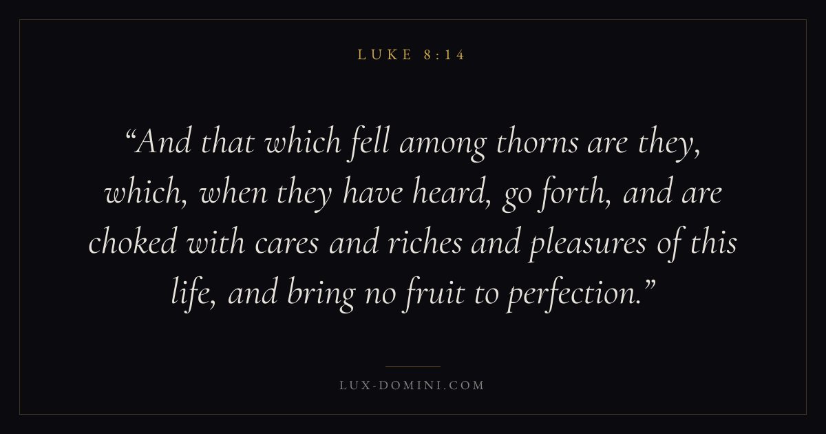 And that which fell among thorns are they, which, when they have heard, go forth, and are choked with cares and riches and pleasures of this life, and bring no fruit to perfection.
