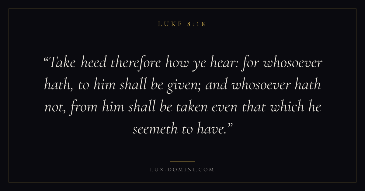 Take heed therefore how ye hear: for whosoever hath, to him shall be given; and whosoever hath not, from him shall be taken even that which he seemeth to have.