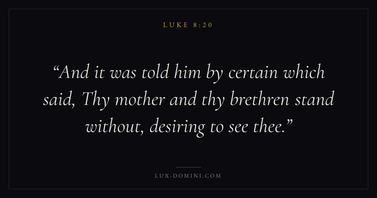 And it was told him by certain which said, Thy mother and thy brethren stand without, desiring to see thee.