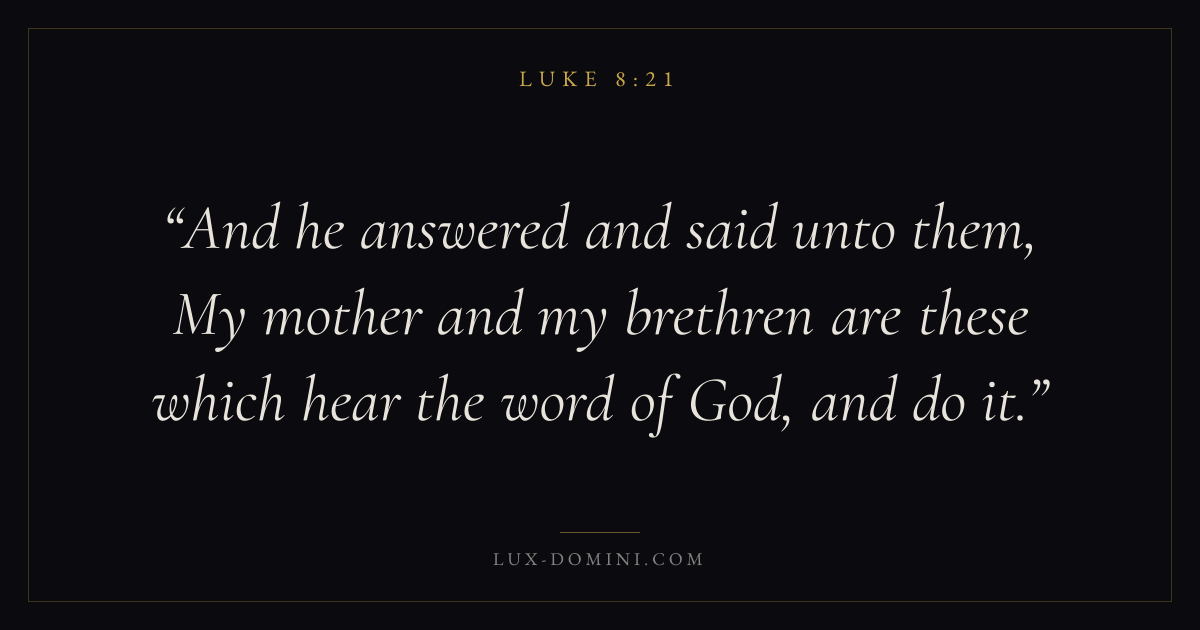 And he answered and said unto them, My mother and my brethren are these which hear the word of God, and do it.