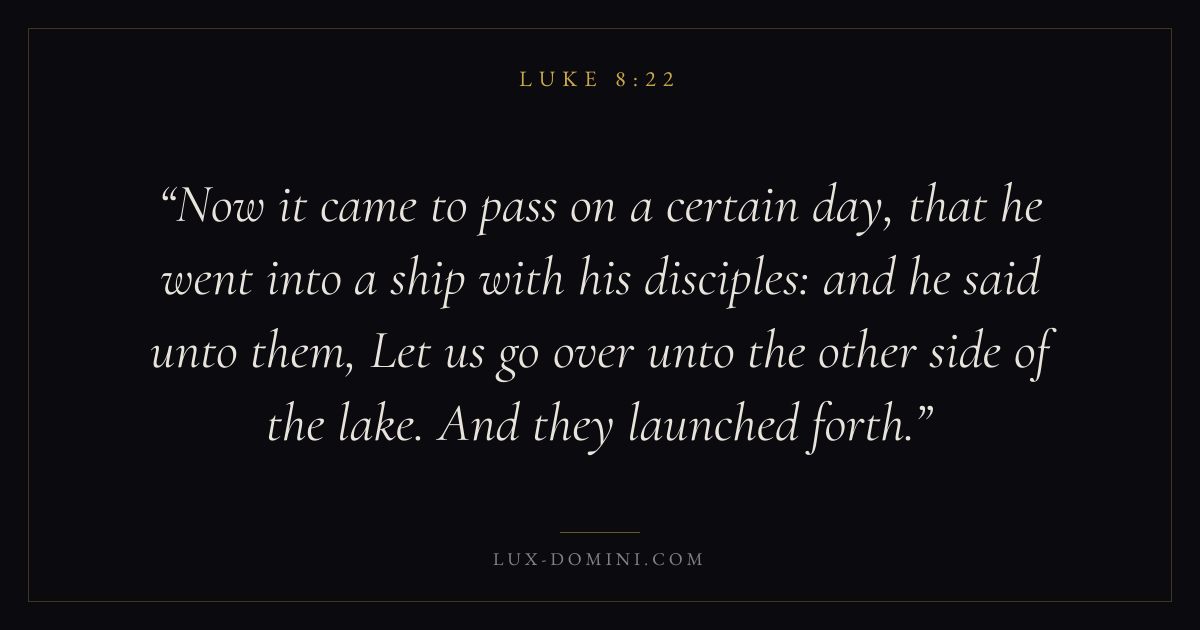 Now it came to pass on a certain day, that he went into a ship with his disciples: and he said unto them, Let us go over unto the other side of the lake. And they launched forth.