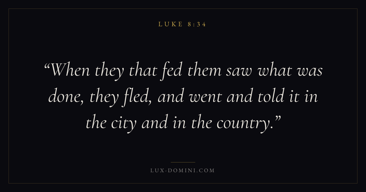 When they that fed them saw what was done, they fled, and went and told it in the city and in the country.
