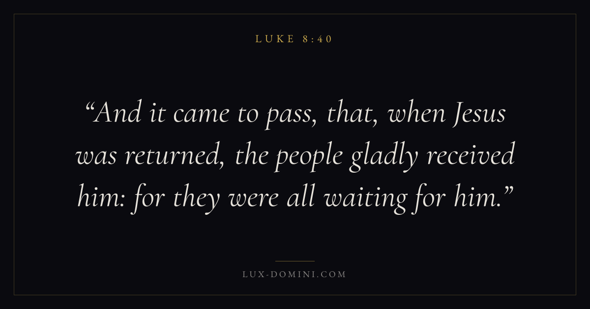 And it came to pass, that, when Jesus was returned, the people gladly received him: for they were all waiting for him.