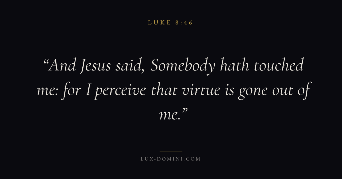 And Jesus said, Somebody hath touched me: for I perceive that virtue is gone out of me.