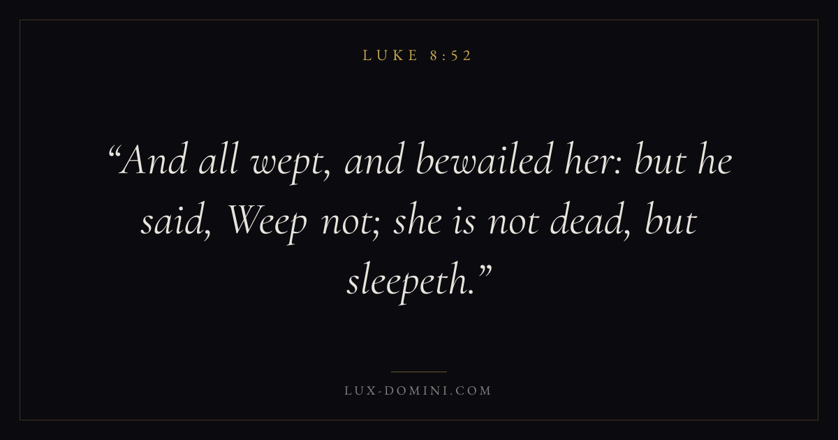 And all wept, and bewailed her: but he said, Weep not; she is not dead, but sleepeth.