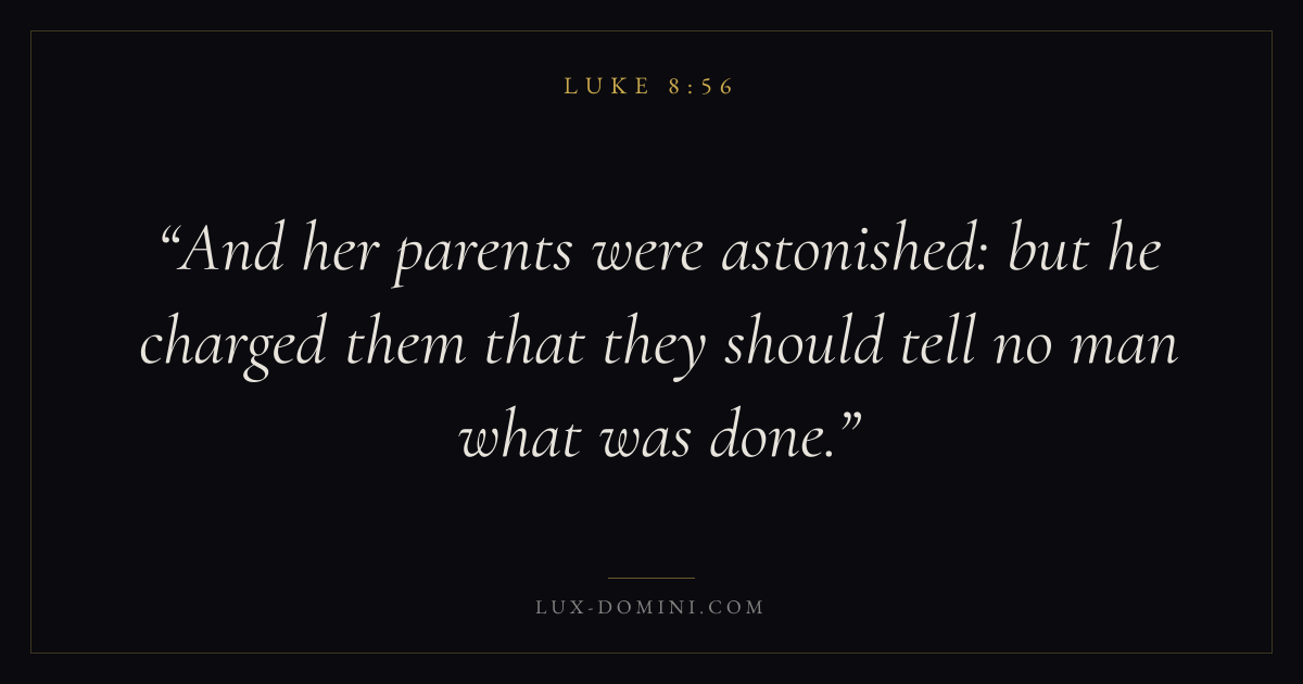 And her parents were astonished: but he charged them that they should tell no man what was done.