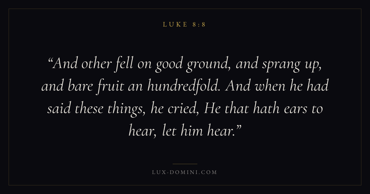 And other fell on good ground, and sprang up, and bare fruit an hundredfold. And when he had said these things, he cried, He that hath ears to hear, let him hear.