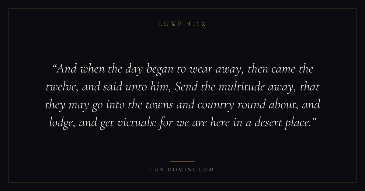 And when the day began to wear away, then came the twelve, and said unto him, Send the multitude away, that they may go into the towns and country round about, and lodge, and get victuals: for we are here in a desert place.