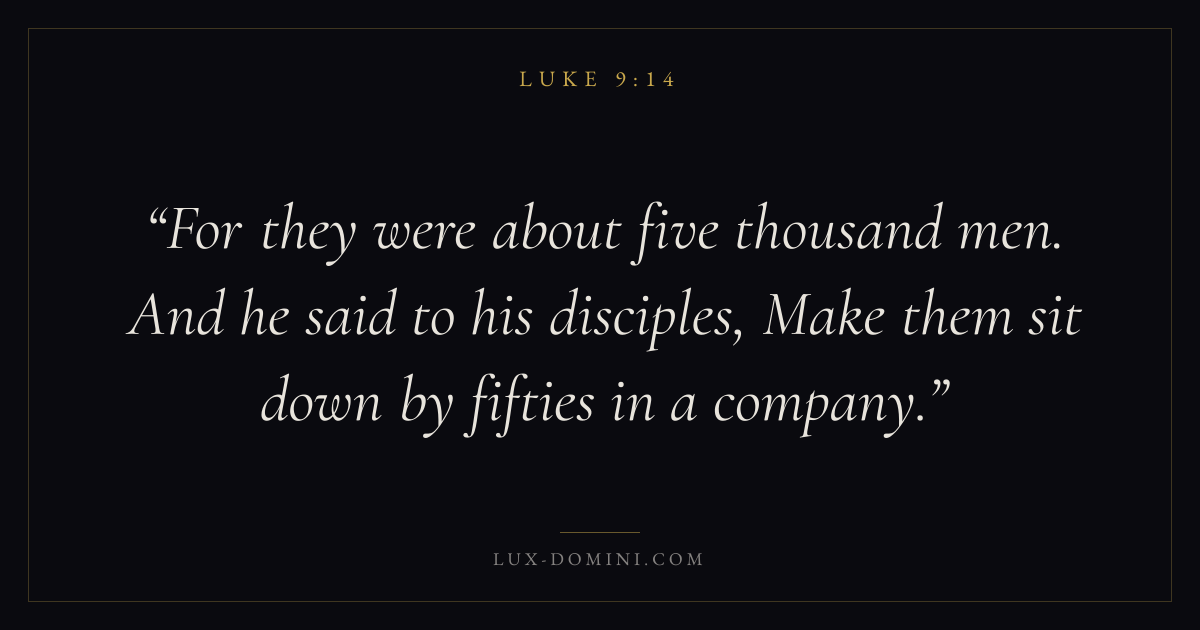 For they were about five thousand men. And he said to his disciples, Make them sit down by fifties in a company.