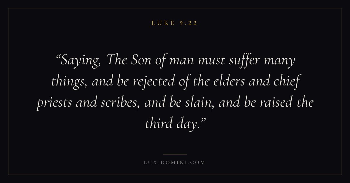 Saying, The Son of man must suffer many things, and be rejected of the elders and chief priests and scribes, and be slain, and be raised the third day.
