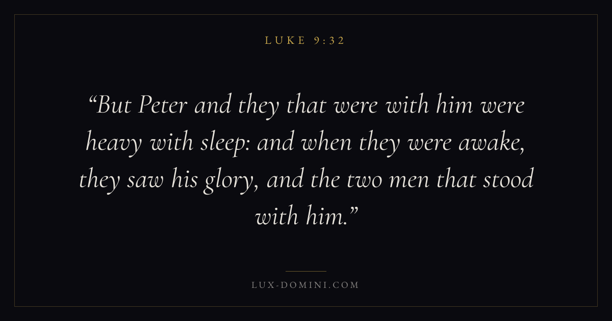 But Peter and they that were with him were heavy with sleep: and when they were awake, they saw his glory, and the two men that stood with him.