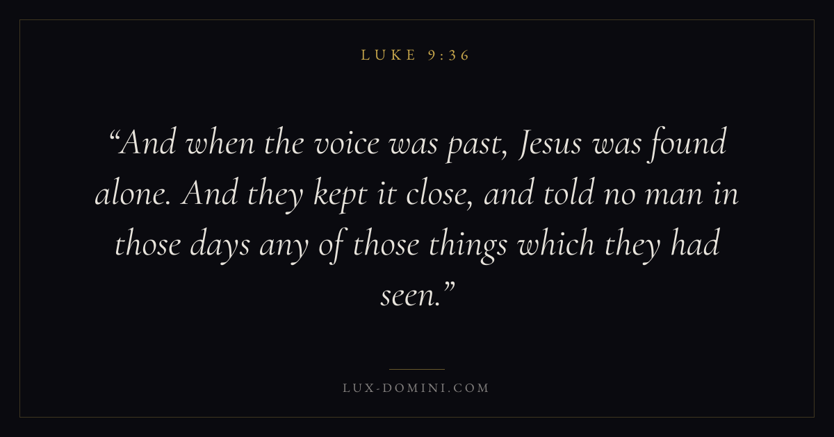 And when the voice was past, Jesus was found alone. And they kept it close, and told no man in those days any of those things which they had seen.
