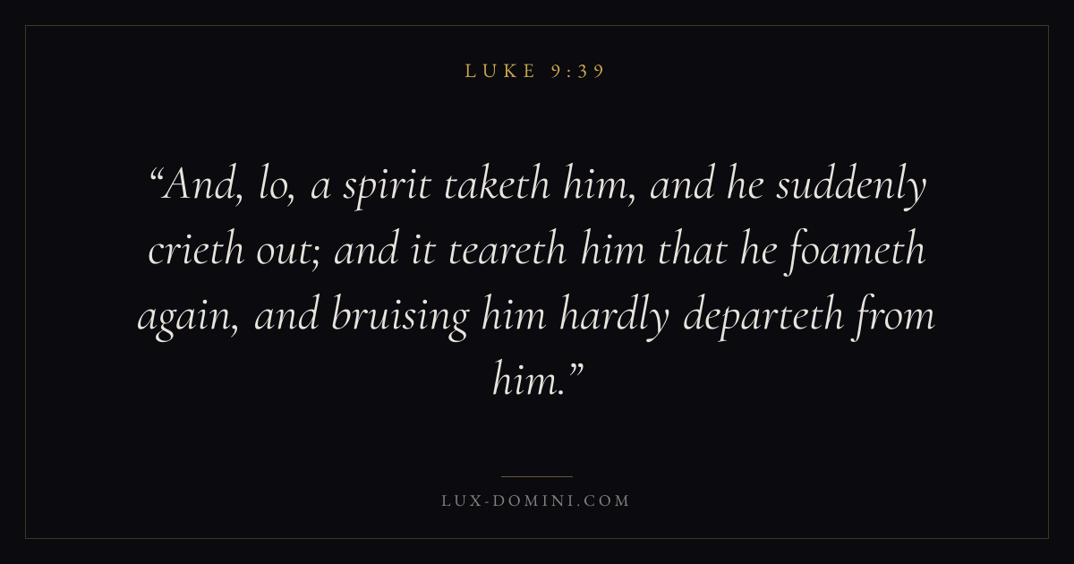 And, lo, a spirit taketh him, and he suddenly crieth out; and it teareth him that he foameth again, and bruising him hardly departeth from him.
