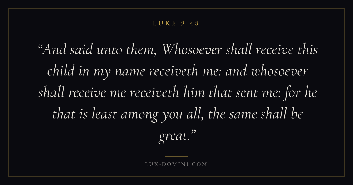 And said unto them, Whosoever shall receive this child in my name receiveth me: and whosoever shall receive me receiveth him that sent me: for he that is least among you all, the same shall be great.
