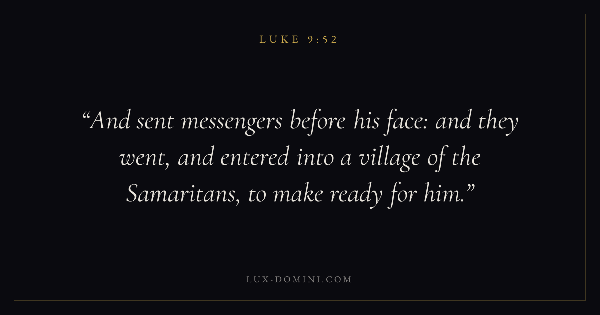And sent messengers before his face: and they went, and entered into a village of the Samaritans, to make ready for him.
