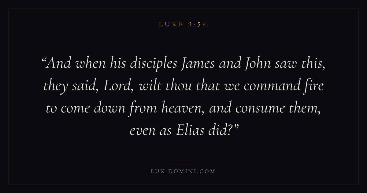 And when his disciples James and John saw this, they said, Lord, wilt thou that we command fire to come down from heaven, and consume them, even as Elias did?