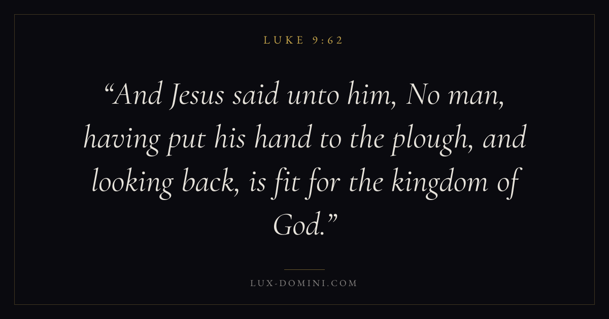 And Jesus said unto him, No man, having put his hand to the plough, and looking back, is fit for the kingdom of God.