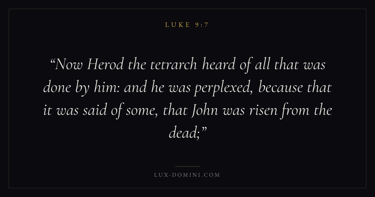 Now Herod the tetrarch heard of all that was done by him: and he was perplexed, because that it was said of some, that John was risen from the dead;